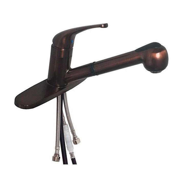 Description / American Brass Company Oil Rubbed Bronze Single Lever Pull-Out Kitchen Faucet with Deck Plate
