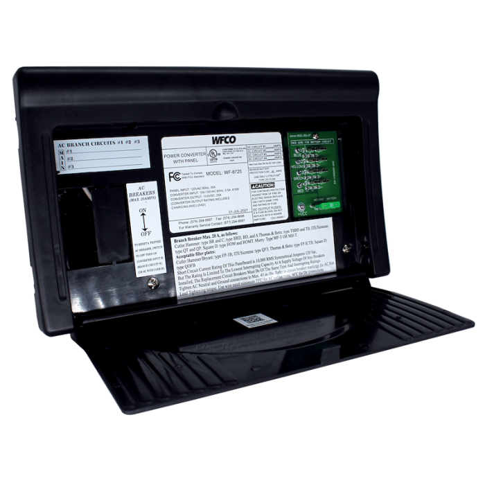 Description / WFCO Black 25 Amp Distribution Panel Converter w/ Auto-Detect